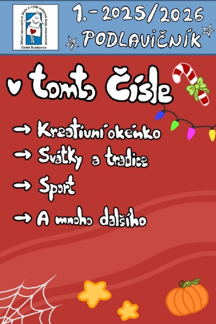 V letošním prvním čísle Podlavičníku přinášíme rozhovory s novými učiteli, přiblížíme zvyky a tradice o Vánocích a také zajímavé tipy na vánoční cukroví, představíme zajímavou poetickou i výtvarnou tvorbu žáků a shrneme dosavadní sportovní úspěchy.
